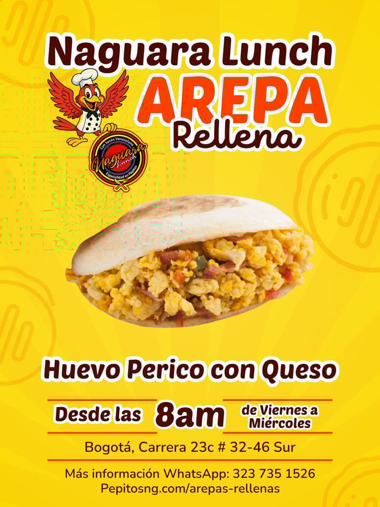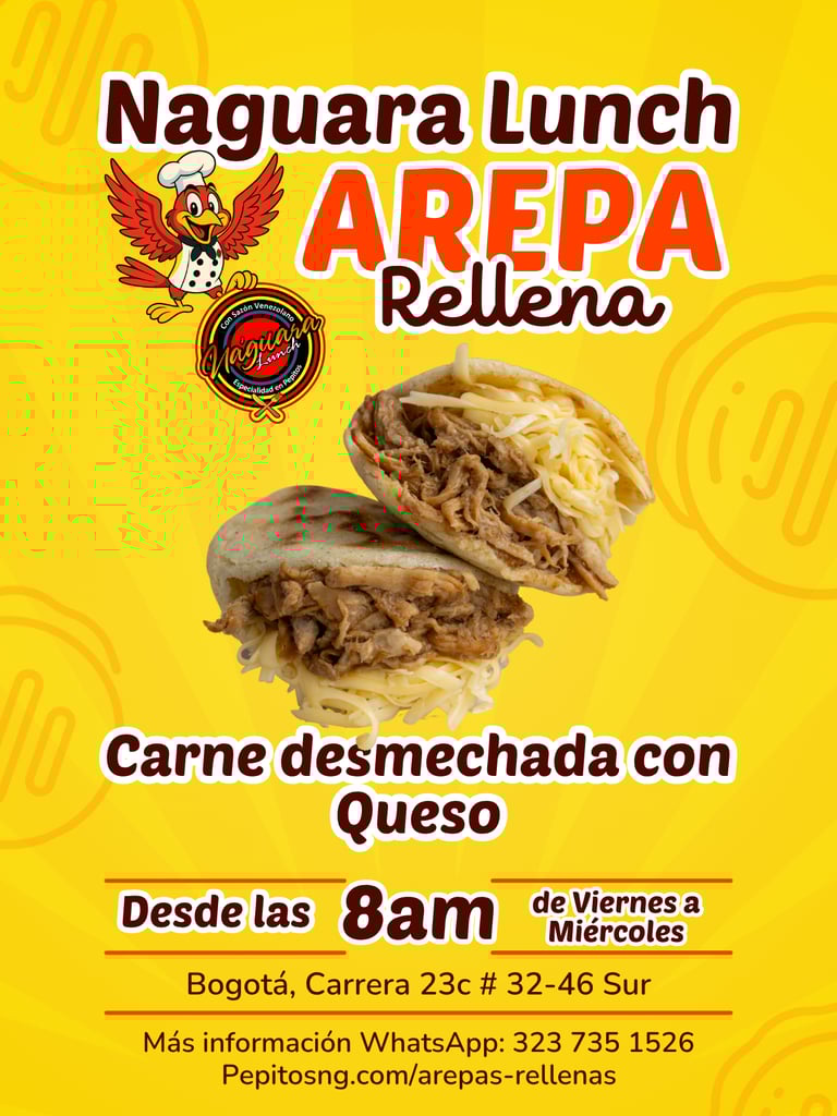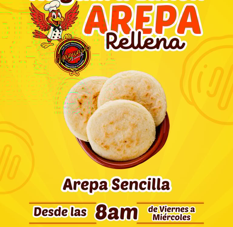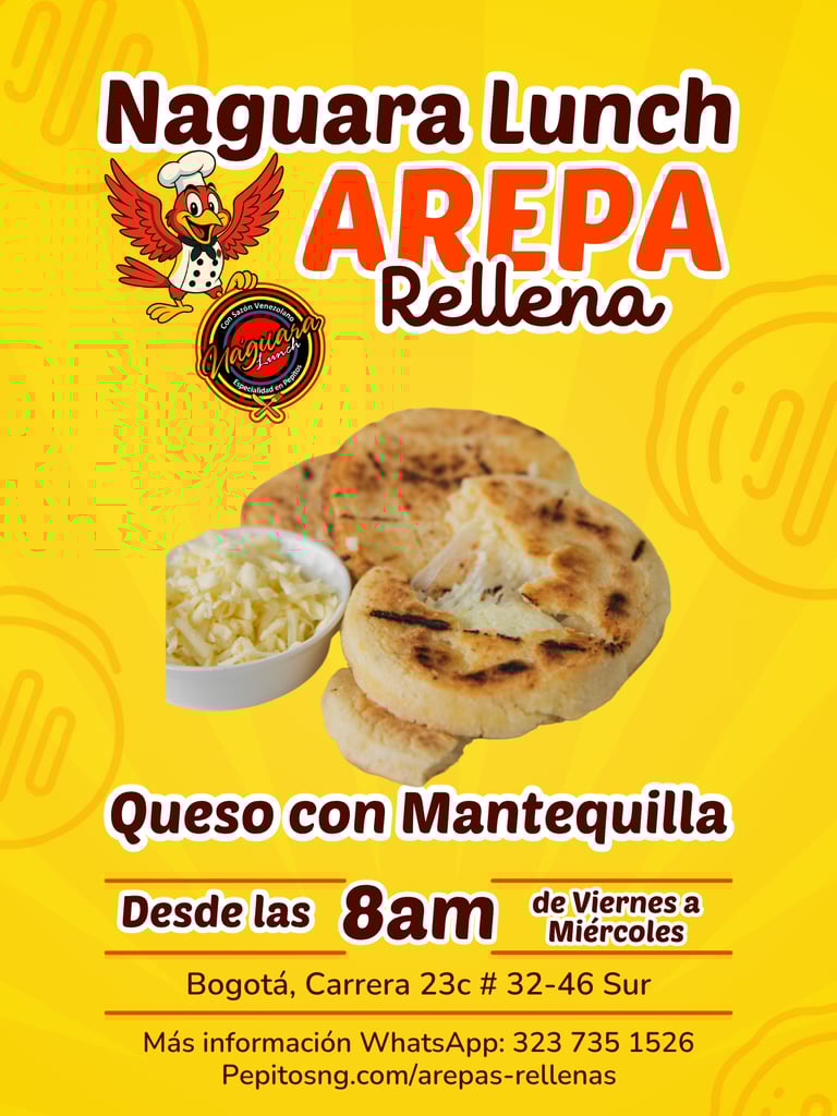 En las mañanas de Naguara Lunch, encuentras deliciosas arepas rellenas con mucha variedad, listas para servir en un desayuno o como acompañante.