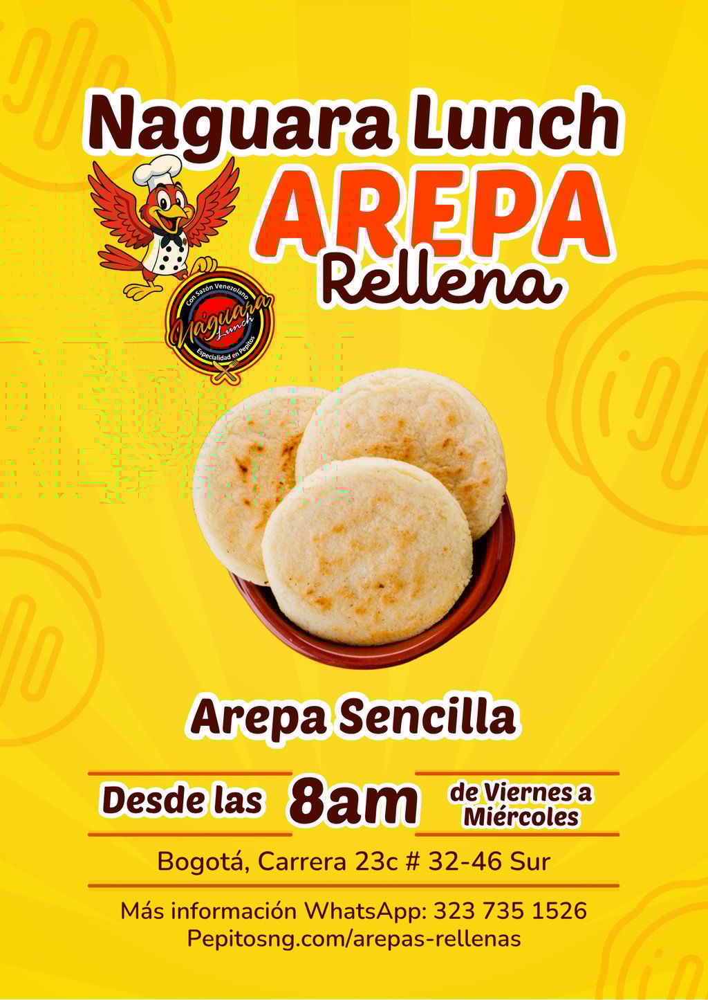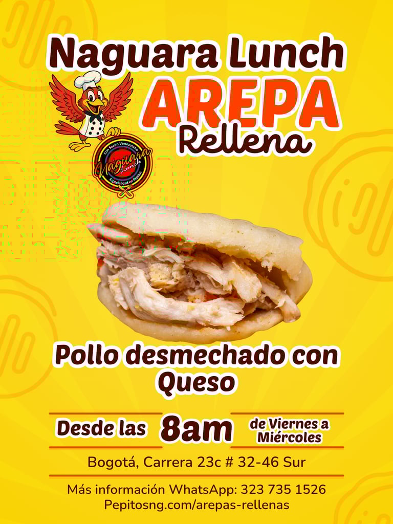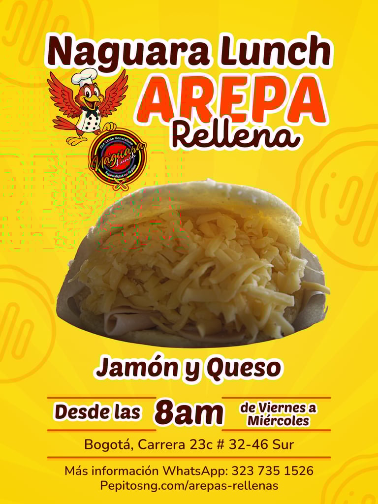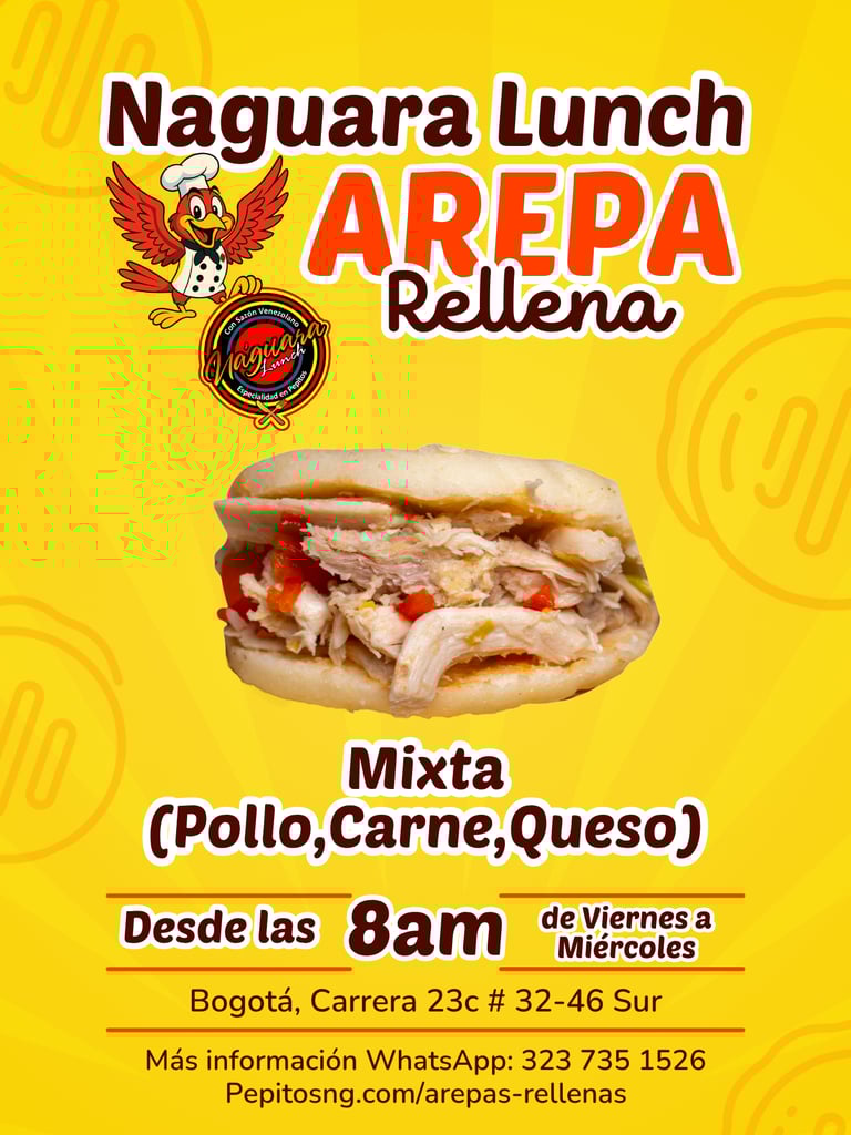 En las mañanas de Naguara Lunch, encuentras deliciosas arepas rellenas con mucha variedad, listas para servir en un desayuno o como acompañante.