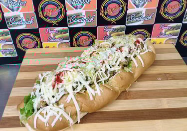 Pan de Pepito, 260 gr de proteína entre (Res, Pollo y Cerdo), Lechuga, Tomate, Cebolla Salteada con la Proteína, Papitas cabello de ángel, Queso rallado, Salsas tradicionales y de la Casa.